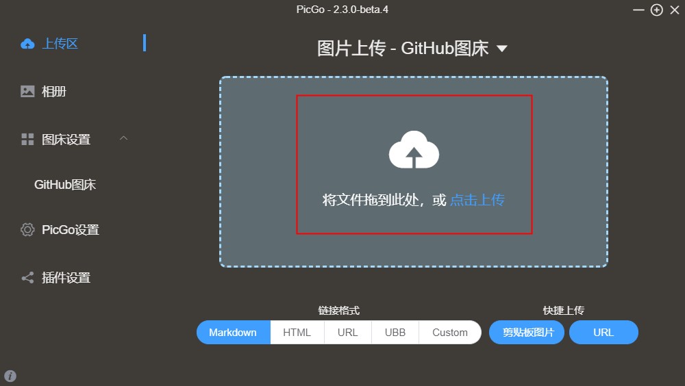 1.点击上传图片,此时如果你上面的配置正确,上传的图片将会同步至github仓库内