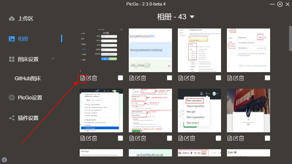 2.点击相册,可见你的图片,点击此按钮,即可复制图片链接