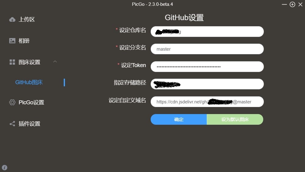 - 在 PicGo 中,找到图床设置 -> GitHub图床。