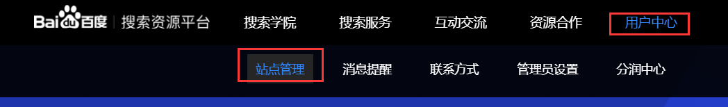 1.访问百度站长平台官网,注册或者登陆百度账号,依次选择【用户中心】-【站点管理】,添加你的网站