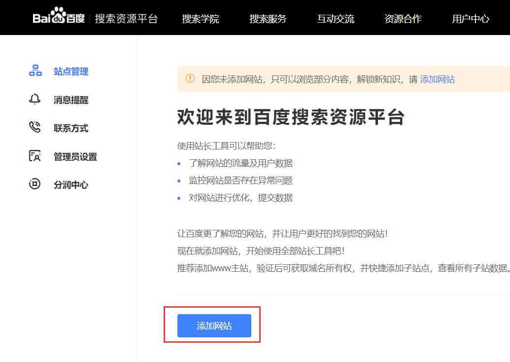 一:前往百度站长平台添加网站