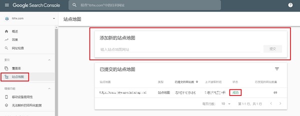 8.将此链接填上点击提交,下面出现成功即可,谷歌收录很快,几个小时就会收录成功了